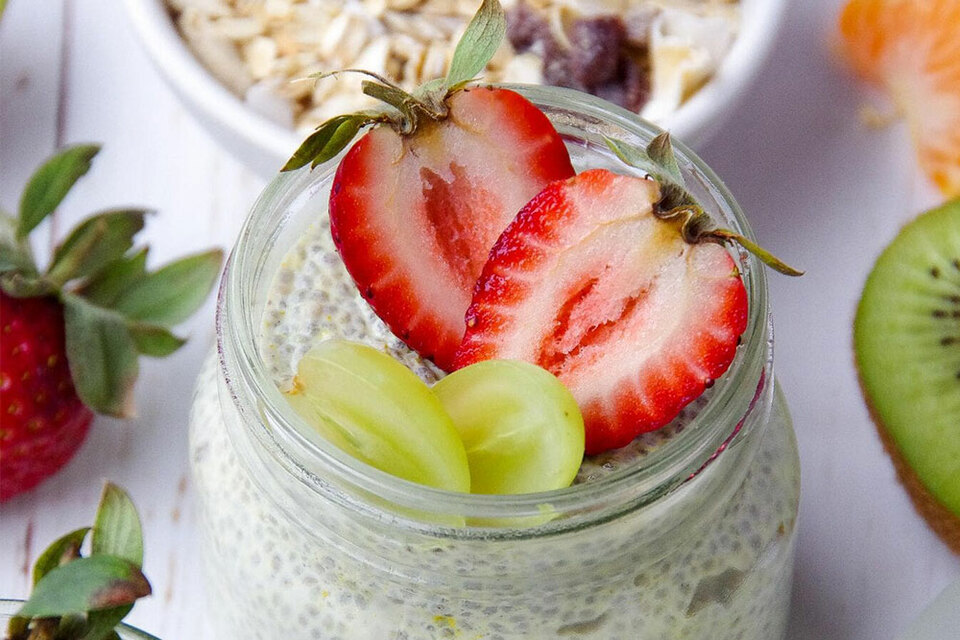 - Remove from the fridge and top with fruit and granola and enjoy!