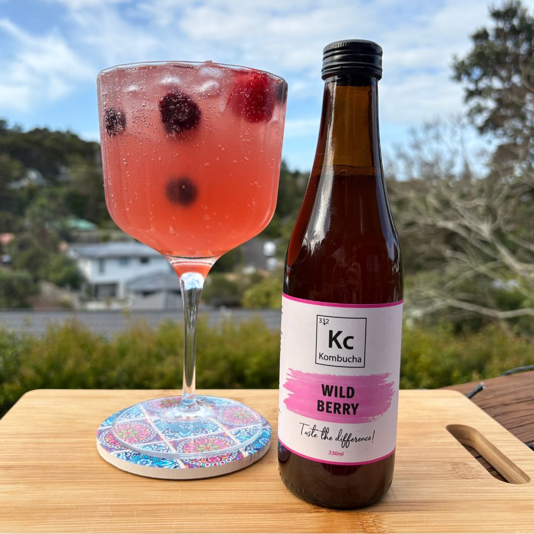 - Pour in the prosecco and top with Kc Wild Berry Kombucha.